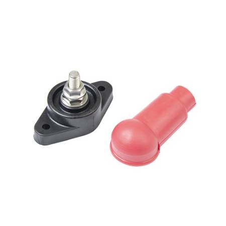 These Blue Sea Systems insulated stainless steel studs terminate multiple large conductors. One-piece serrated flange nut ensures correct and secure connections. CE certified.