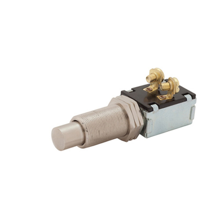 Description: This push button starter and horn switch is supplied with a chrome plated, brass face nut, providing a professional look that supports longevity of the switch. This push button starter and horn switch is commonly used in automotive and industrial applications. Insulated type push-button starter and horn switch.