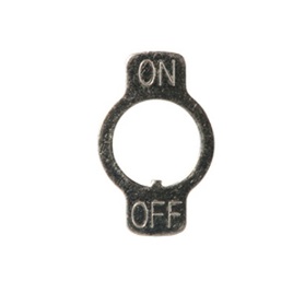 This toggle switch plate acts as an On-Off indicator for standard toggle switches. The toggle switch plate has a keyway nub that locks and orientates the On-Off plate into its proper position.